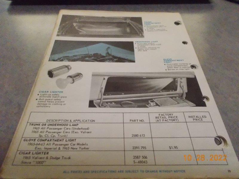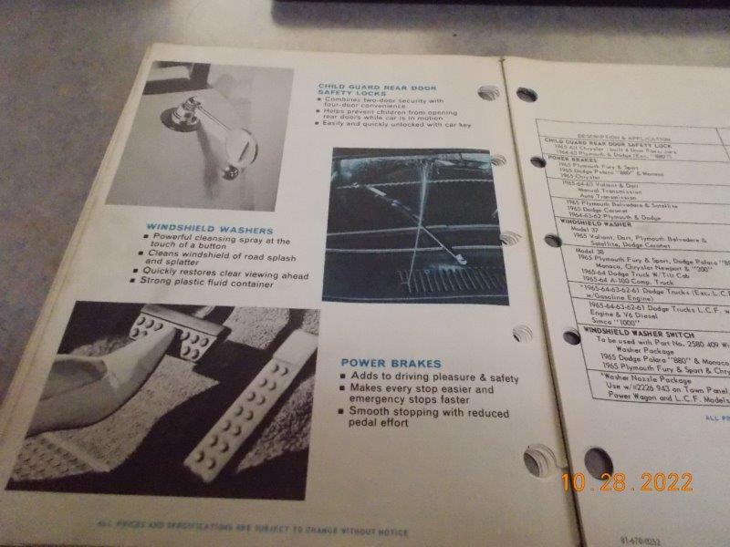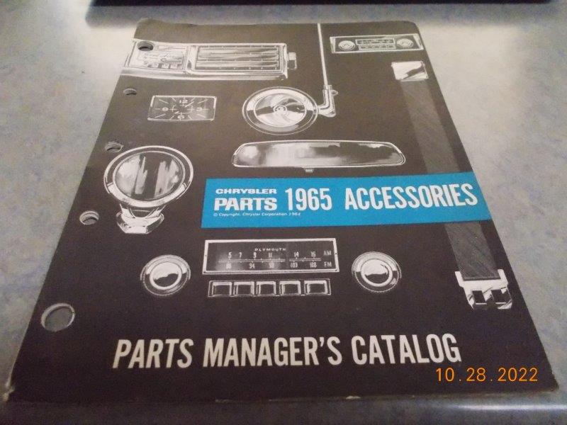 1965 loose leaf Chrysler parts & accessories catalog Interesting $20 w/free shipping in US PayPal, check or money order accepted Thanks for the ad! Dave Schwandt Your message is ready to be sent with the following file or link attachments: DSCN9795 DSCN9796 DSCN9797 Note: To protect against computer viruses, e-mail programs may prevent sending or receiving certain types of file attachments. Check your e-mail security settings to determine how attachments are handled. -- For archives go to http://www.forwardlook.net/300-archive/search.htm#querylang --- You received this message because you are subscribed to the Google Groups "Chrysler 300 Club International" group. To unsubscribe from this group and stop receiving emails from it, send an email to chrysler-300-club-international+unsubscribe@xxxxxxxxxxxxxxxx. To view this discussion on the web visit https://groups.google.com/d/msgid/chrysler-300-club-international/00a701d8eadd%24e2942020%24a7bc6060%24%40iowatelecom.net.