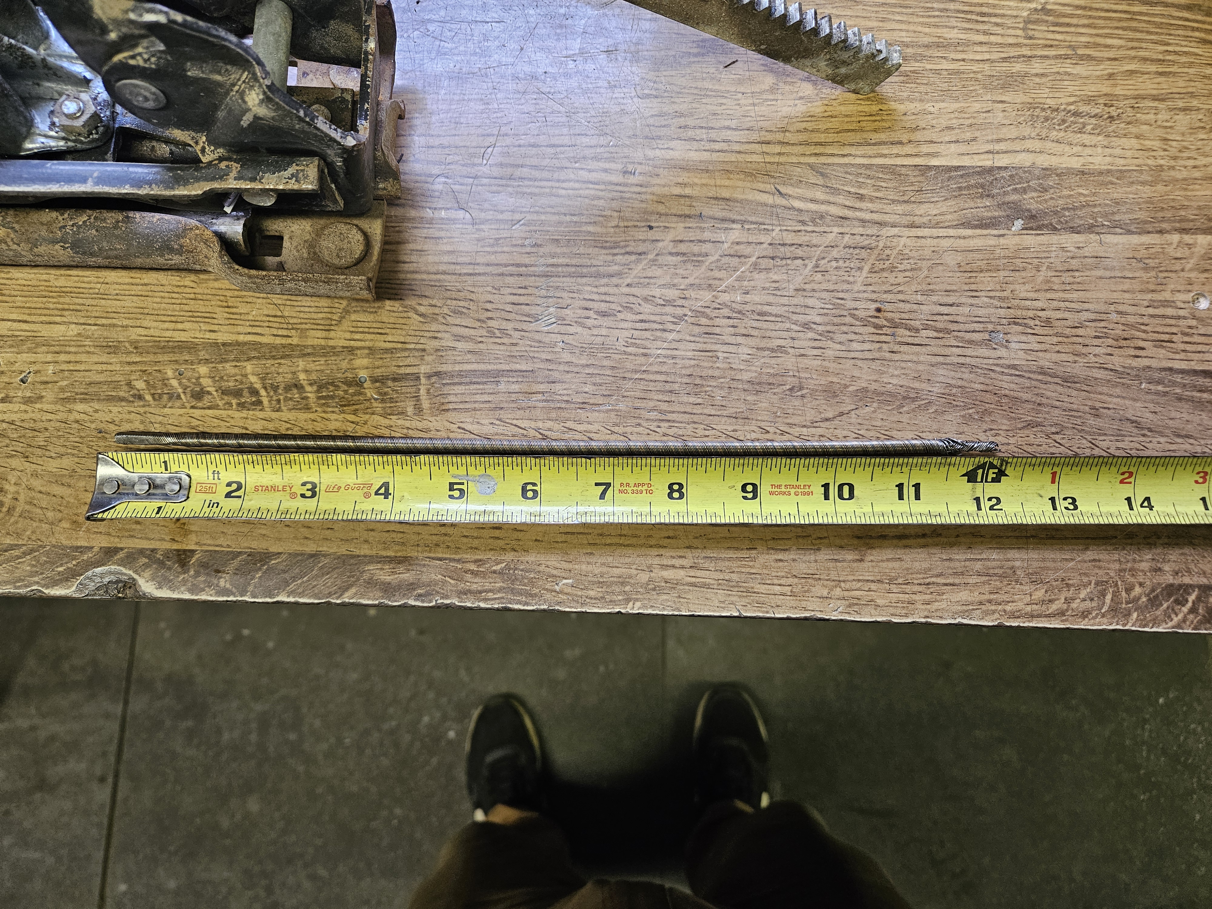 B: Need the 12 1/4" drive cable (square on each end) that is inside one of the three guide tubes. This is on the driver's side actuator and makes the seat move forward and backward. You can see, one end has failed.