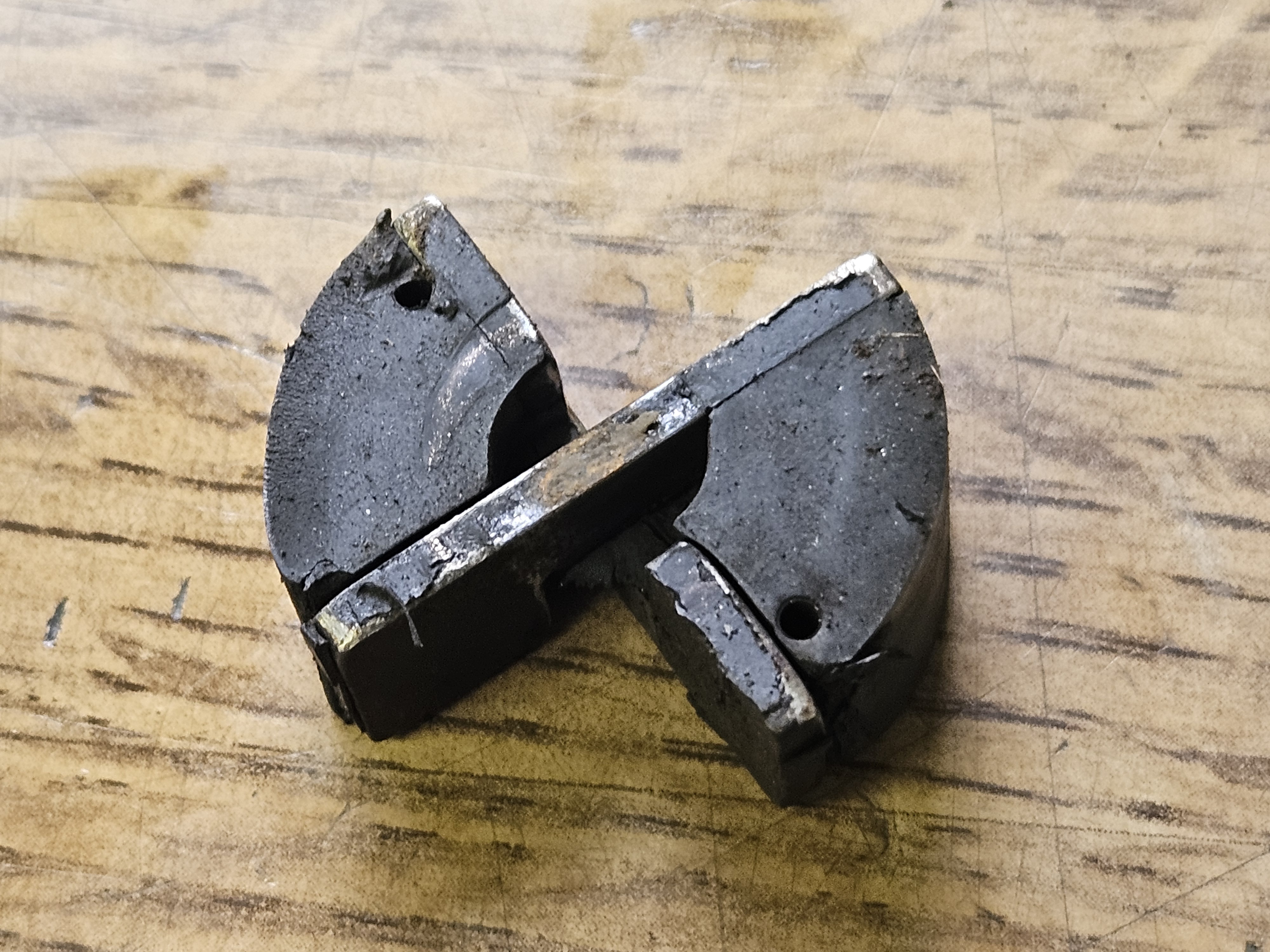 A: The round rubber drive-puck between the motor shaft and transmission input drive gear. As you can see it came apart and half is missing.