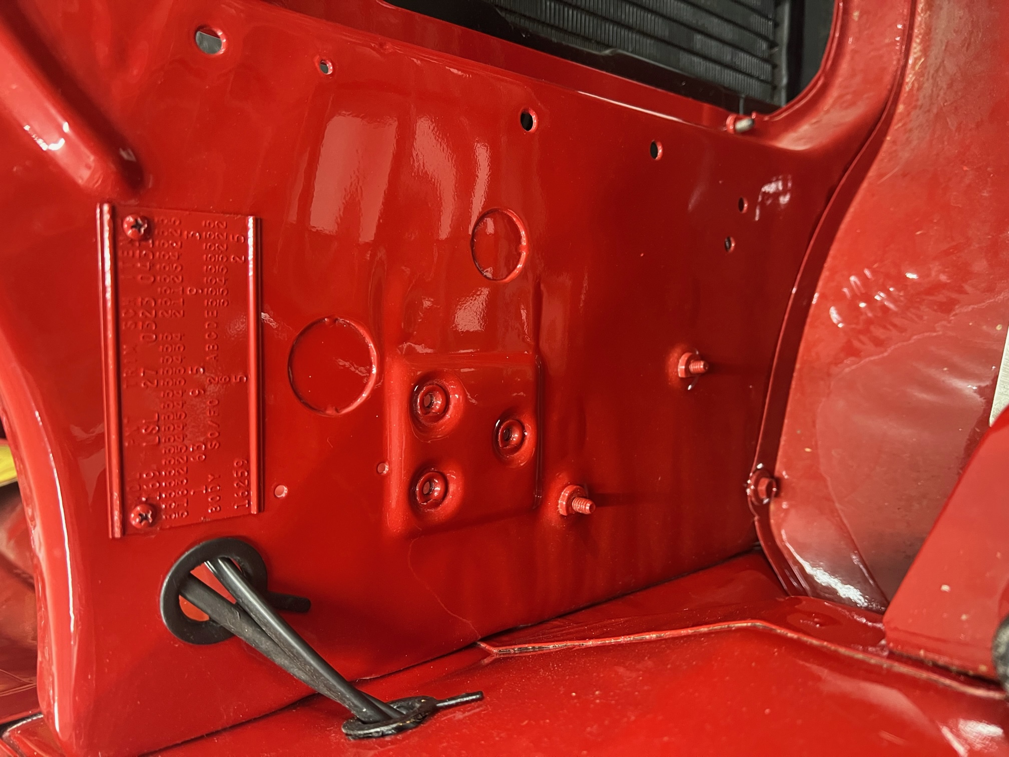 Notice the 58 has the pierce nuts installed whereas the 57C just the holes.  Also both years still have the hole form coins still installed; not punched out.  I guess one is for the horn wiring.