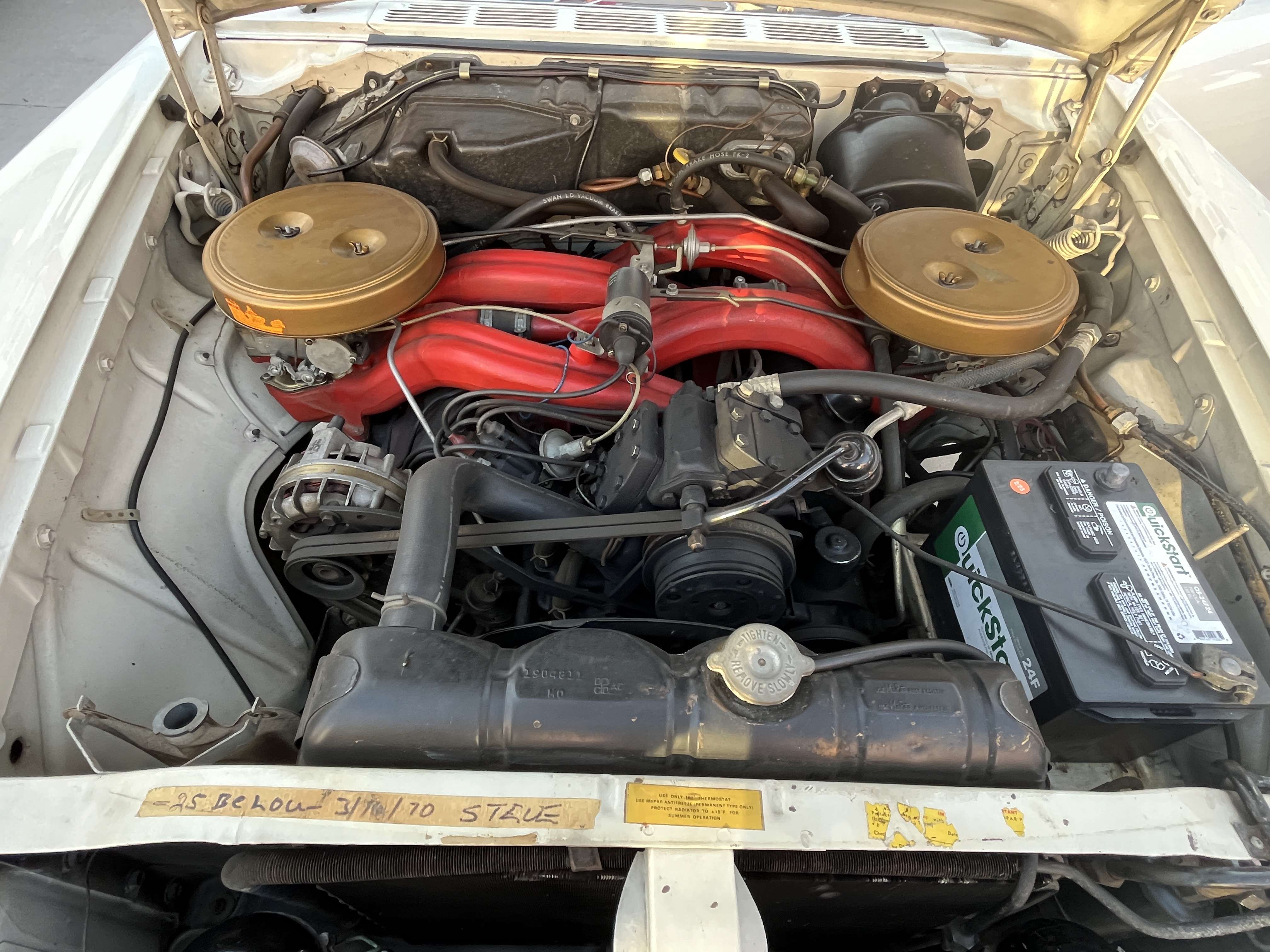 --On 07/01/2025 4:52 PM CDT John Nowosacki <jsnowosacki@xxxxxxxxx> wrote:For archives go to http://www.forwardlook.net/300-archive/search.htm#querylangTime for a new thread instead of adding more confusion to the ongoing discussion of options on ram cars. ;-)Looking at the press photos of the 300G engine bay, I see some things that I did not notice before.In the photo, it appears that the heater hose that is laying across the rams is also right on top of the linkage for the crossrams. Am I missing something, or since these were 'press photos' was that corrected/changed on production vehicles? It also looks like the pulley on the alternator is a two groove pulley (on a non-A/C car?) and is a larger diameter than what I would expect to see. There also appears to be a rectangular battery hold down with a straight brace across the middle of the battery. I don't believe I've seen a hold down like that, either. Am I to assume these things are 'correct', or just how the press photos turned out? I don't have any pictures of the engine bay from the 71 mile G, and not being the original owner of my G convertible, I don't know how it came from the dealership, but when I bought it with less than 40K miles on it as the 3rd owner, it had a smaller, single groove pulley on the alternator, a different style battery hold down, and no heater hose on top of the ram linkage. Any comments?--