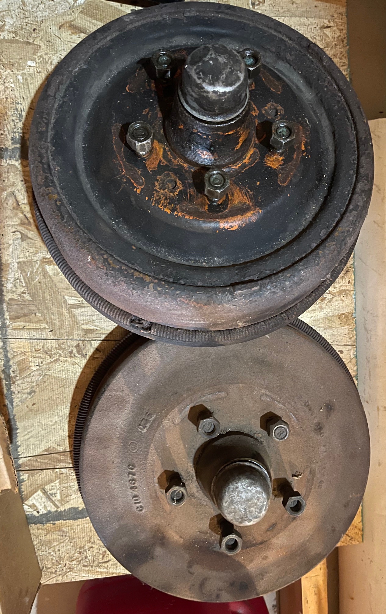 Hello All, The brake drum with the orange paint came off my ‘63 300 which I have owned since 1990. Does this casting seem to be OEM? I ask because the one next to it with the more rounded features is supposed to be a direct replacement. Any comments are appreciated. I have one of each type installed because one of them has a ‘scratch’ that is maybe 3/8” wide and 0.005” deep. I did not want to put the scratched one on my 300 because the brake shoes would not be in contact with this area. I don’t want to cut the drum. Any comments are appreciated including if anyone knows the price to refine these drums ( company in Mc Henry, IL). The original drums seem to be worn thin. Thank you, Mark Lindahl PS-Could the different looking drum be from a truck? -- For archives go to http://www.forwardlook.net/300-archive/search.htm#querylang --- You received this message because you are subscribed to the Google Groups "Chrysler 300 Club International" group. To unsubscribe from this group and stop receiving emails from it, send an email to chrysler-300-club-international+unsubscribe@xxxxxxxxxxxxxxxx. To view this discussion visit https://groups.google.com/d/msgid/chrysler-300-club-international/1F39FFA7-B1BD-4D8F-A13D-083CD3F4CF0D%40sbcglobal.net.