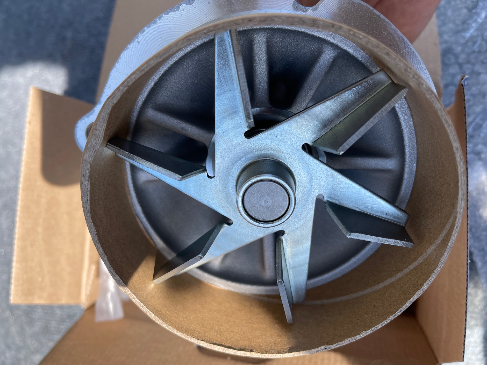 The Napa pumps I have been using (42032) have six vanes (pictured).  Maybe these are for the a/c cars as Don mentioned fewer vanes.  These have worked fine on non-a/c cars too but may not be ideal.  I’ll check with Napa to see what the options are.
