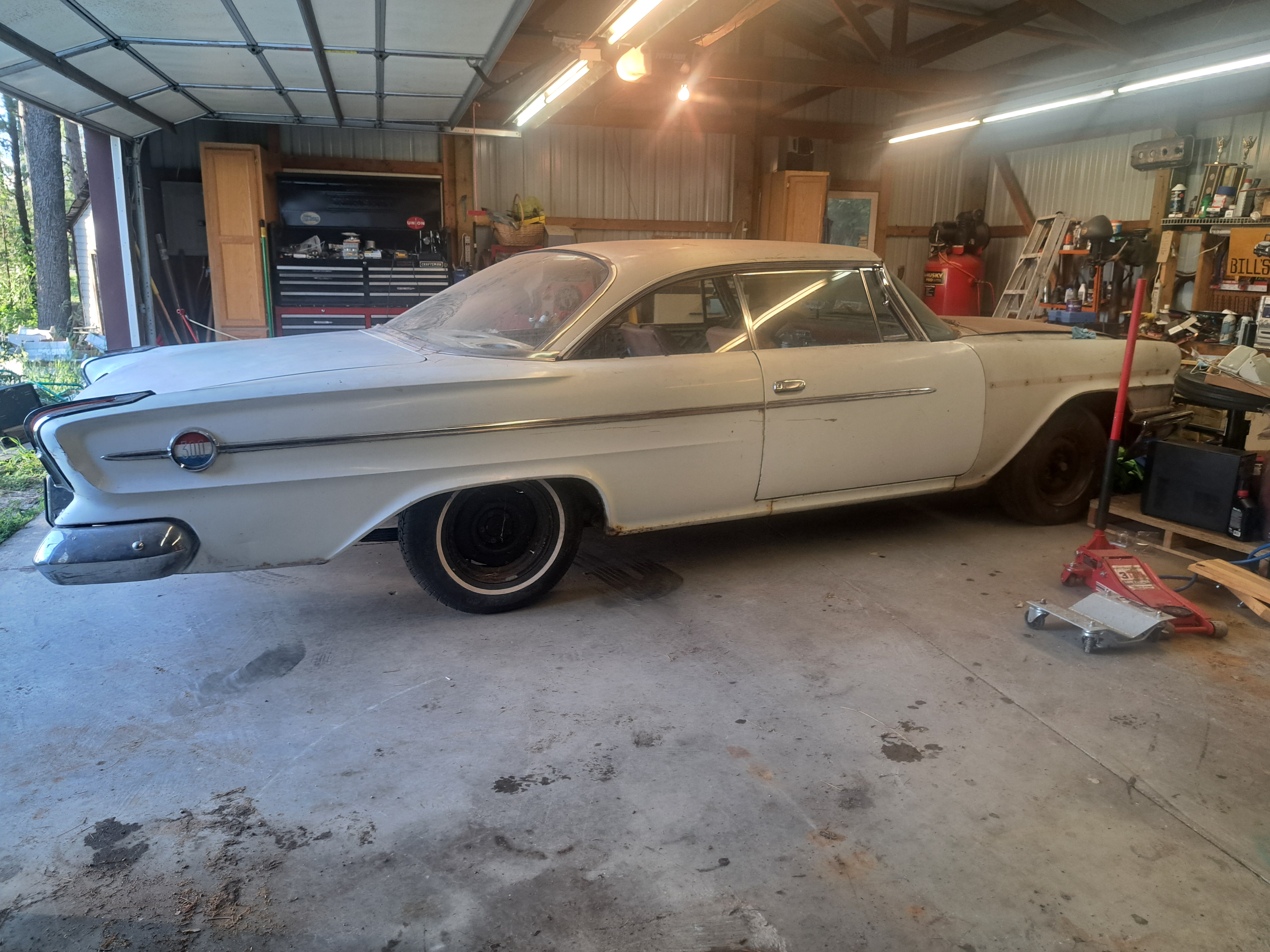 When I bought it all that was there was the body shell and rear axle, no front clip, no suspension, no engine or trans and no interior. The vin and fender tags had been removed, but the awesome Bob Merritt researched the number on the firewall and came up with a micro niche file with that number and the vin #. The state of Mn. will issue me a clean title for the H. The front clip and suspension came from my '62 Newport. The engine is a 1963 413, but it has the correct H manifold and correct rebuilt carbs. It also has the H tach drive distribClub. The transmission is from a '62 Newport. It works, but leaks.