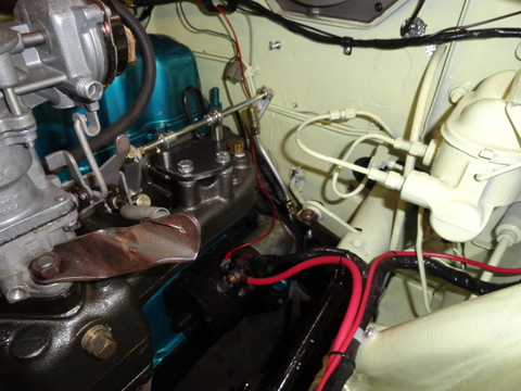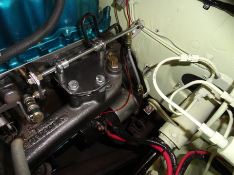 Linkage was my next problem. The original gas pedal pushes instead of pulling, eliminating the use of cable. I had to completely redesign the linkage. My results are pictured. I am proud of my handy work.