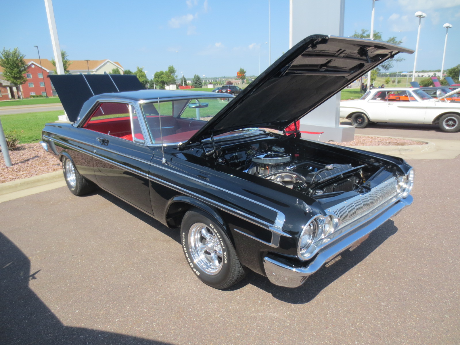 The black 64 Dodge took top honors for pre 68 B body modified at the Moparama show in Sioux Falls, had a well dressed Poly under the hood.