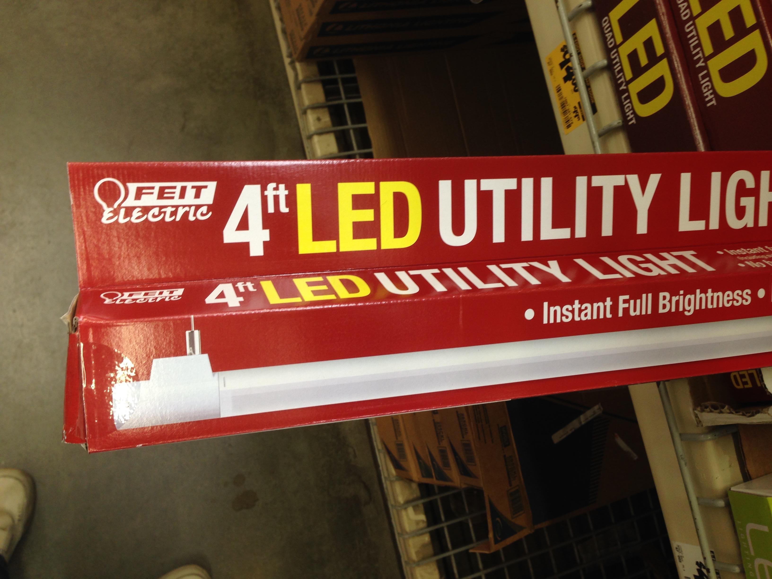 We recently spotted a 4-foot single tube LED in Home Depot. This one isn't a replacement bulb for fluorescent tube fixtures. Nor does it even have a metal fixture at all.