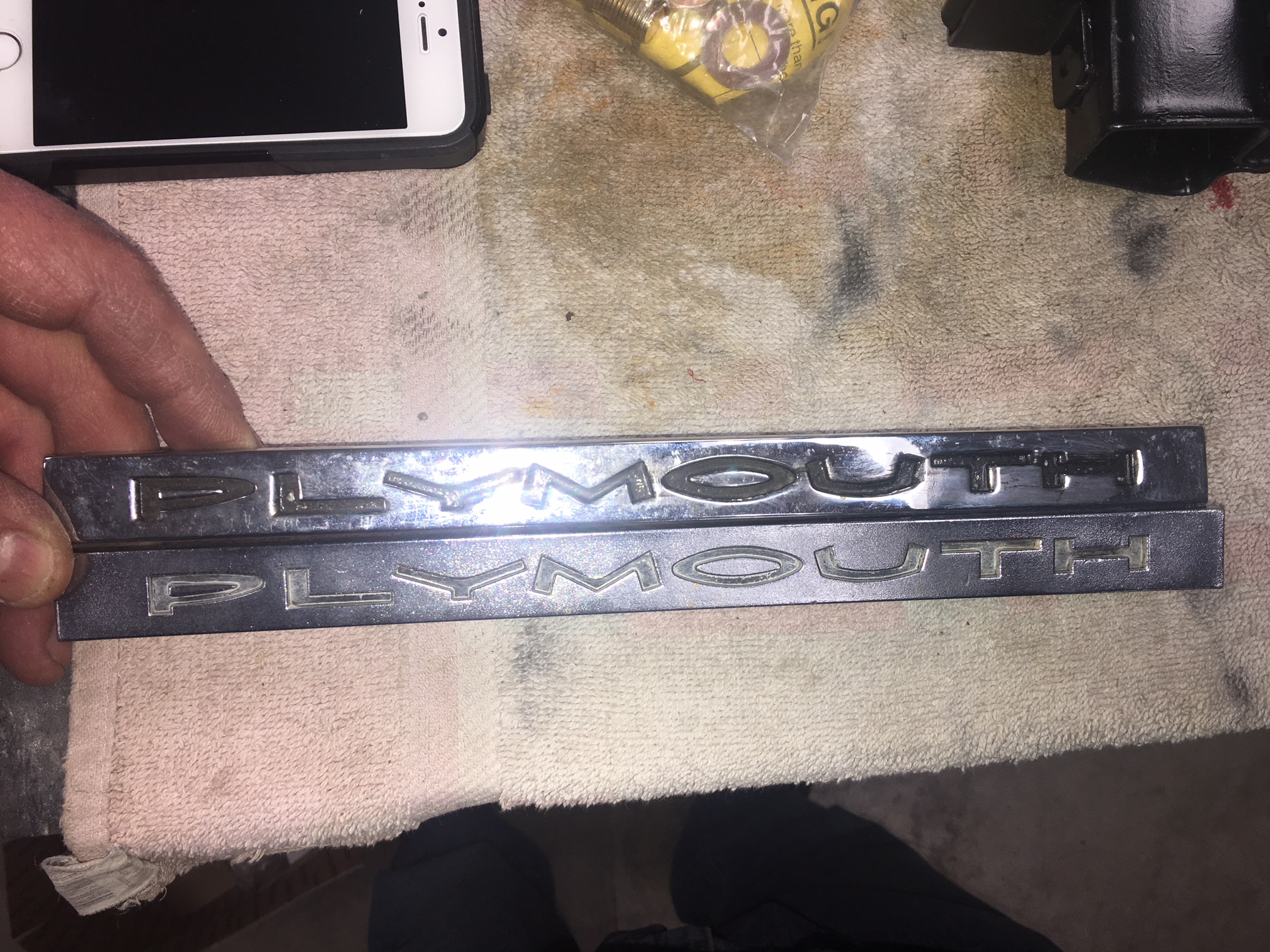 Need help wrapping my 62 Plymouth Sport Fury What finish is on the Plymouth Chrome Emblem on the Right front edge of the hood Is it satin or bright Chrome I have both which is correct? Does the radio Antenna Chrome bezel have a slot as shown in the photo or not, which is correct? Mark -- You received this message because you are subscribed to the Google Groups "The 1962 to 1965 Mopar Mail List Clubhouse" group. To unsubscribe from this group and stop receiving emails from it, send an email to 1962to1965mopars+unsubscribe@xxxxxxxxxxxxxxxx. For more options, visit https://groups.google.com/d/optout.