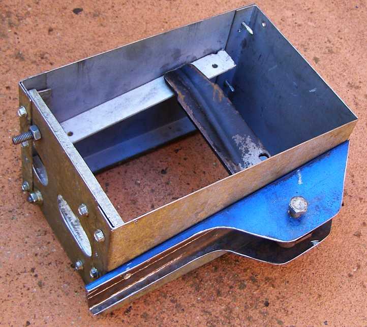 All of this is made from leftovers. The lever is a Peugeot 504 clutch pedal (the bell crank will be made from a Peugeot 504 brake pedal and mount on some more of the same piece of tube I cut up for this mount), another bit of smaller tube as cut in half for the mount supports inside the front panel, the basic material for the box started life as a display shelf in a department store, many of which I bought for not much money when the shop remodelled its displays.